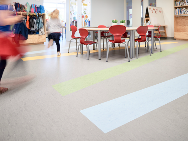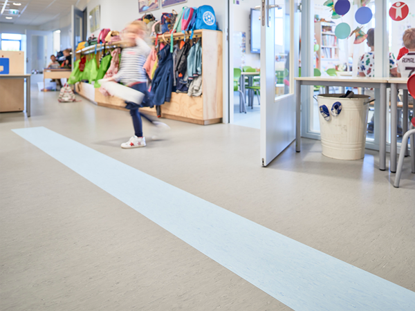 “With noraplan valua, we have equipped the school with a floor that has excellent acoustic properties. Thanks to the elasticity of the flooring, we can achieve a significant impact sound improvement and thus suppress the background noise that usually prevails in schools,” Groenendaal continued. In addition, nora rubber floors are extremely slip-resistant, so running children are better protected against slipping or even falling over. In addition to its outstanding functional properties, noraplan valua also scores with its appearance. With its warm colours and naturally structured surface, noraplan valua creates a warm, comfortable atmosphere. Integrated inlays in different colours set additional modern accents and stylishly enhance the overall appearance.