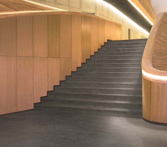 The dense surface of the stair coverings makes them extremely durable and easy to maintain, keeping their appearance after many years of use, even in high-traffic areas. Furthermore, the new stairtread with the relief-surface ensures a high slip resistance, achieving an R10-classification (acc. DIN 51130). nora rubber floorings can also significantly improve acoustics, featuring impact sound improvement up to 20 dB. Due to their permanent elasticity, there is less impact sound than with hard floors. This minimises disturbing noises (for example, the clattering of heels or the rolling of trolleys) and noticeably improves room acoustics. “The new stairtreads are a perfect addition to our existing staircase portfolio. Customers choose them on a functional level and because they provide a modern look in design-oriented areas,” concluded Oswald.