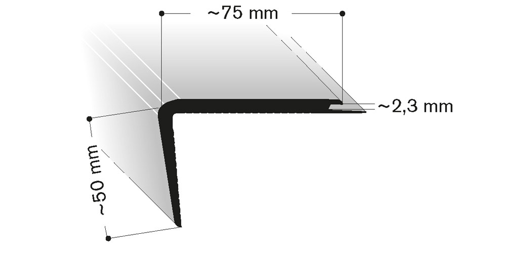 Con labio de inserción para una colocación rápida, fácil y limpia en todos los tipos de escaleras. Fijación con cinta adhesiva seca nora® stepfix.