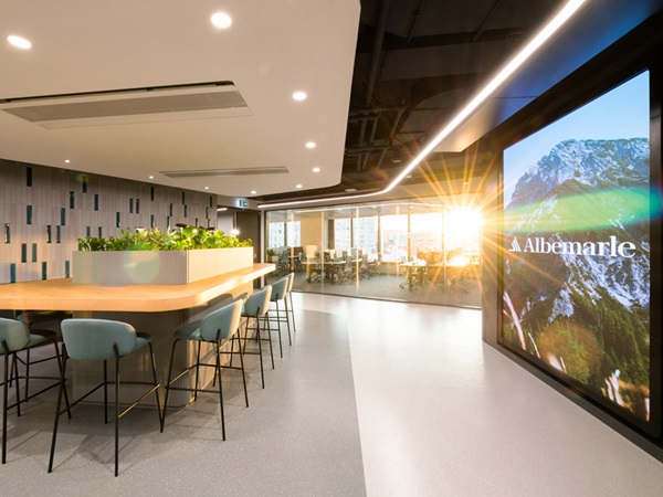 Albemarle’s Hungarian subsidiary is also a flagship office space in terms of sustainability. nora rubber floorings have exceptionally high durability, which results in a long service life. Cleaning is simple and requires a minimal amount of chemicals. The combination of these factors has a positive effect on resource conservation. nora floors also do not contain any phthalate plasticizers or halogens, have very low emissions and promote good interior air quality. The norament 975 LL flooring installed also contains postindustrial recycled materials.