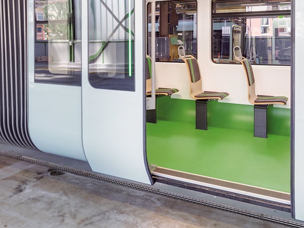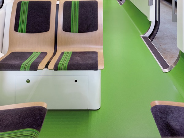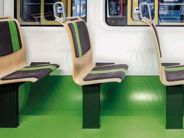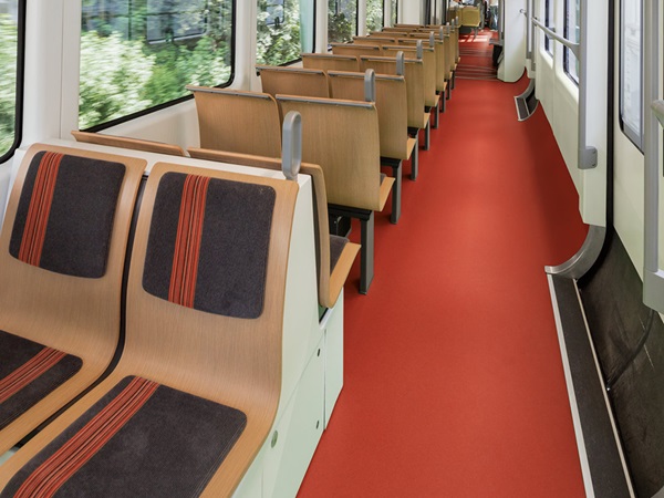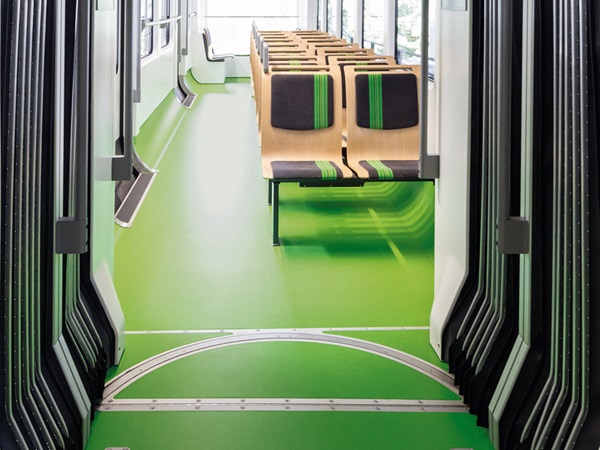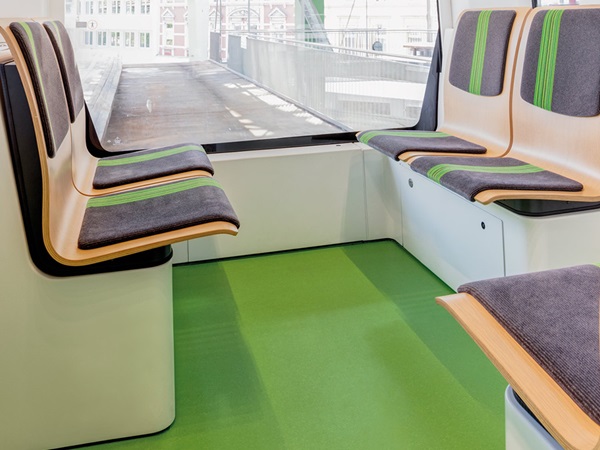 The rubber flooring is both functional and also has an attractive appearance: “The noraplan sentica range has an extensive and finely graduated range of colours”, explains Bank. “That gave us more scope in the colour design of the internal space”. Added to that, noraplan sentica appears to be almost completely solid in colour and yet dirt marks are less likely to be seen. Ten cars have red flooring, ten have yellow and 11 have green flooring. “We liked all three floor colours proposed by the designers so much, that we didn’t want to exclude any one of them”, Works Manager Kaulfuss justified WSW’s decision to use the different coloured floorings. The colour of the rubber flooring is picked out in the seat covers. “The colour design should attract extra attention and create potential for identification”, Bank continued. The new generation of vehicles has successfully achieved a perfect synthesis between tradition and innovation, so that the symbol of Wuppertal is also in an excellent position to face the decades to come.