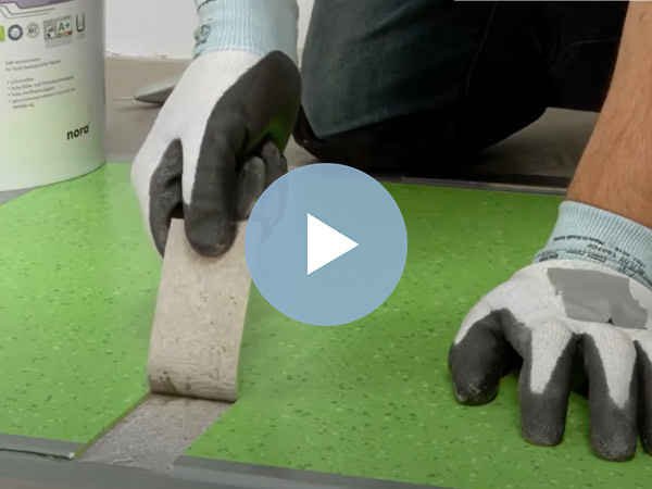 Aprenda paso a paso a ranurar y aplicar soldadura en frío nora en juntas para pisos nora con una superficie estructurada.