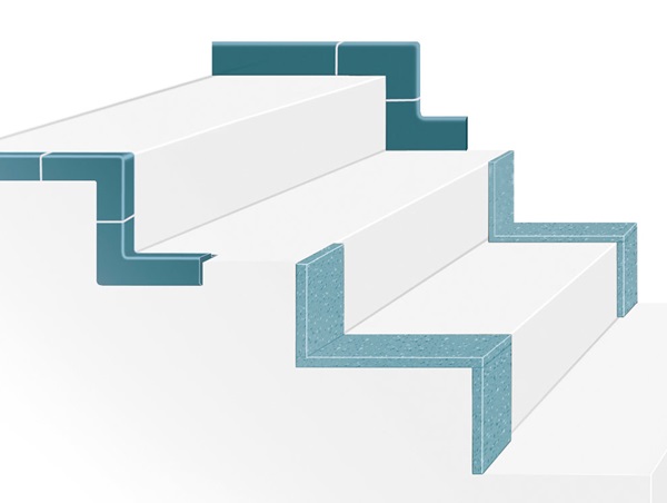 Our portfolio of stair covering systems includes a range of matching stair accessories. As well as stair angles for smooth connections between right-angled stairs and both the wall and banister side, our portfolio contains suitable adjoining skirtings and stringers for landings and ramps. The stair margin offers the opportunity to create side margins for the wall and banister sides as well as continuous margin designs in rooms and corridors.