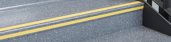 The pre-formed stair coverings are available in four designs and three different widths. They can also be equipped with additional signal or safety stripes.