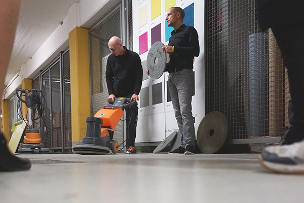 nora by Interface organises regular cleaning training. With advice from experienced nora application engineers, the participants learn how to clean nora rubber floor coverings in a relaxed atmosphere. Specific problems and individual wishes of the participants are of course also addressed in the process.