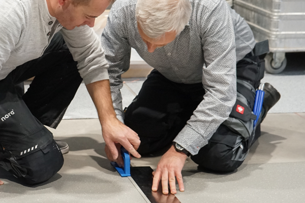 Participants learn everything about the installation of nora rubber floor coverings as well as important criteria in relation to subfloor preparation as well as fixing and installing norament steptread, cutting techniques and much more. Participants particularly appreciate the fact that their specific problems and individual requests are flexibly addressed in the process.
