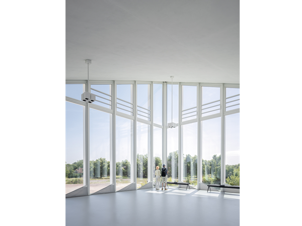 During the renovation of the Hyparschale in Magdeburg, not only was the iconic outer shell repaired, but the interior also underwent extensive renovation. A new spatial sculpture echoes Müther's square basic system. The four cubes, each measuring 15 × 15 meters, are arranged in the corners of the hall and form gallery levels connected by bridges. The entire interior was fitted with new floors – an important part of the renovation concept, which is designed for functionality, aesthetics, and the special structural requirements of this listed shell construction. A visible screed was used on the ground floor. On the newly created upper floor, noraplan uni in a shade of gray was installed over an area of 1,200 square meters. The flooring impressed not only with its understated appearance, but also with its technical advantages. "The rubber flooring is significantly lighter and more cost-effective than exposed screed," explains architect and project manager Ursula Köper from gmp Architekten.