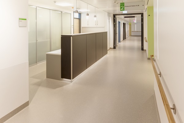 Thomas Schaff, Staatl. anerkannte Fachkraft für Klinikhygiene: Ableitfähig und Trittschalldämmend, beständig gegen Desinfektionsmittel, unverfugte Verlegung, hervorragende Eignung für OPs, dichteste Oberfläche