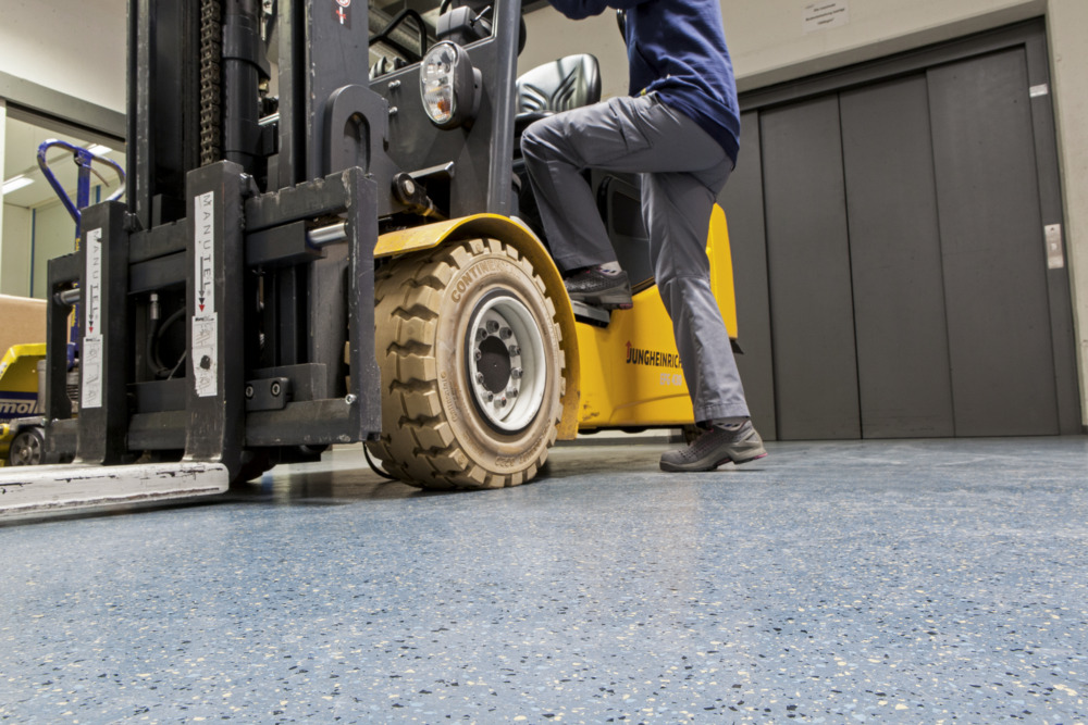 Im Jahr 2001 wurde norament grano bei Schleuniger in Thun verlegt, sowohl in der Logistik als auch im ESD-geschützten Produktionsbereich. Selbst hohe Druckbelastungen durch das tägliche Fahren von Gabelstaplern, Hub- oder Palettenwagen können dem Kautschukboden nichts anhaben.