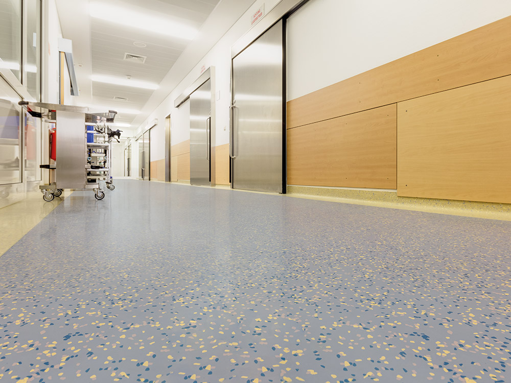 L'hôpital de district de Prignitz est l'hôpital universitaire de la faculté de médecine de Brandebourg « Théodore Fontane ». À la fin des années 1990, il a été décidé que la clinique éparpillée sur de nombreux sites serait centralisée en un nouveau bâtiment à Perlebourg et que celui-ci serait emménagé en 2002. De nombreux bâtiments avaient déjà rassemblé depuis plusieurs années d'excellentes expériences avec les revêtements de sol en caoutchouc nora. Ce sont surtout le nettoyage facile et la robustesse des sols qui ont fait pencher la balance. C'est pourquoi la direction de la clinique a opté pour les sols extrêmement résistants de nora. La totalité du nouveau bâtiment en a été équipée, des salles d'opération aux chambres de patients.