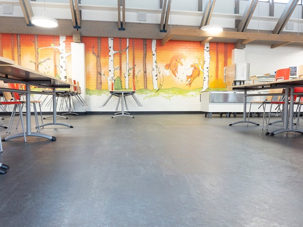 norament 926 arago nTx was chosen for the corridors and canteen of the Karamzin School and noraplan lona nTx for the teachers' rooms and classrooms. The acoustic properties of the rubber material are also excellent. The elastic surface means that noise caused by the clattering of heels, for example, is effectively reduced, resulting in a more pleasant acoustic environment, especially in long corridors or open spaces. The safe nora rubber floorings are an excellent choice for interiors where floors require long service life, functionality, and easy maintenance. Thanks to their dense surface, they are easy to clean, do not require coating and retain their good looks for many years. This makes them both ecologically and economically beneficial.