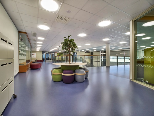 Juteinikeskus is a comprehensive school in Parola in southern Finland. The school offers the students a learning environment which from 2014 to 2016, was re-designed based on an open concept. So, with the exception of a few teaching areas, the school’s classrooms are completely open and not divided, which has had both a peaceful and stimulating effect on its users. “The school’s premises were designed in such a way that all rooms can be used for learning purposes. The design and the colour of the furniture are uniform throughout the school, so that they can be moved freely, without compromising the look,” says interior designer Reeta Lukka.³ Another important criterion in relation to the design was acoustics - especially considering that up to 90 pupils would be working in the open areas at the same time. This is where nora system’s floor coverings, installed during the renovation work at Juteinikeskus, come into play. “Our rubber floors have very good acoustic properties as they significantly reduce the noise of footsteps thanks to their long-term elasticity. This reduction of the noise level in the busy school building with an open learning environment has had a significant impact on the pupils’ ability to concentrate and on their well-being”, adds Jouni Koivisto, Regional Sales Director of Finland.