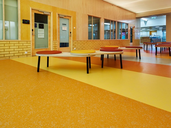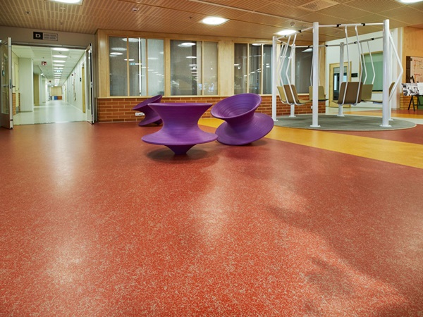 Urjala is a Finnish town also located in the south of the country. The local comprehensive is a relatively new school, completed in spring 2017. Around 400 students from years 1 to 9 are taught at the school which has nora’s rubber floor coverings installed. “I have known nora floor coverings my whole professional life, since about the 1980s”, sums up the responsible architect Mikko Uotila. “I always recommend nora rubber floors, since they have a lot of great properties. They are very comfortable under your feet, because their surface is soft, warm and elastic. This elasticity also ensures that noise from footsteps is reduced, which is important in schools, which are always busy”, adds Uotila. “In addition, nora floors are easy and economical to clean due to their dense surface,” said the architect. Another benefit he mentions is that “nora floor coverings are available with additional functional properties (for example, as electrostatically conductive or as a special non-slip R11 variant) as well as in many different colours, which opens up a world of artistic possibilities”.